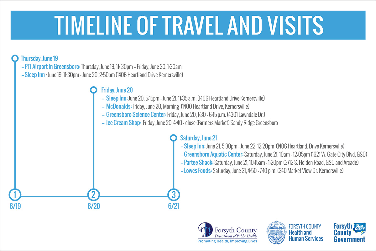 NCDHHS is working closely with the Forsyth County Department of Public Health and Guilford County Health Department to identify locations and times where people might have been exposed to measles.